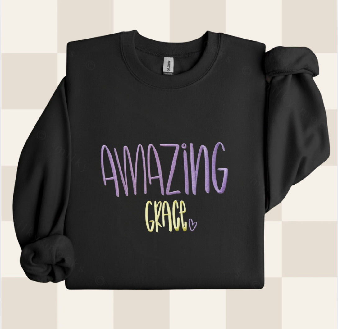 Increase quantity for Amazing Grace Embroidered Crewneck