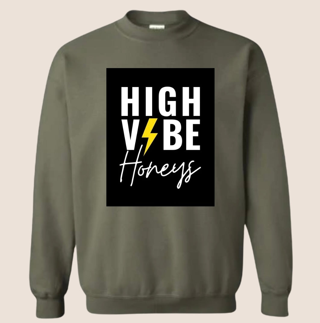 On Gildan heavy blend in military green , dark Heather charcoal and comfort color sweatshirt pepper.