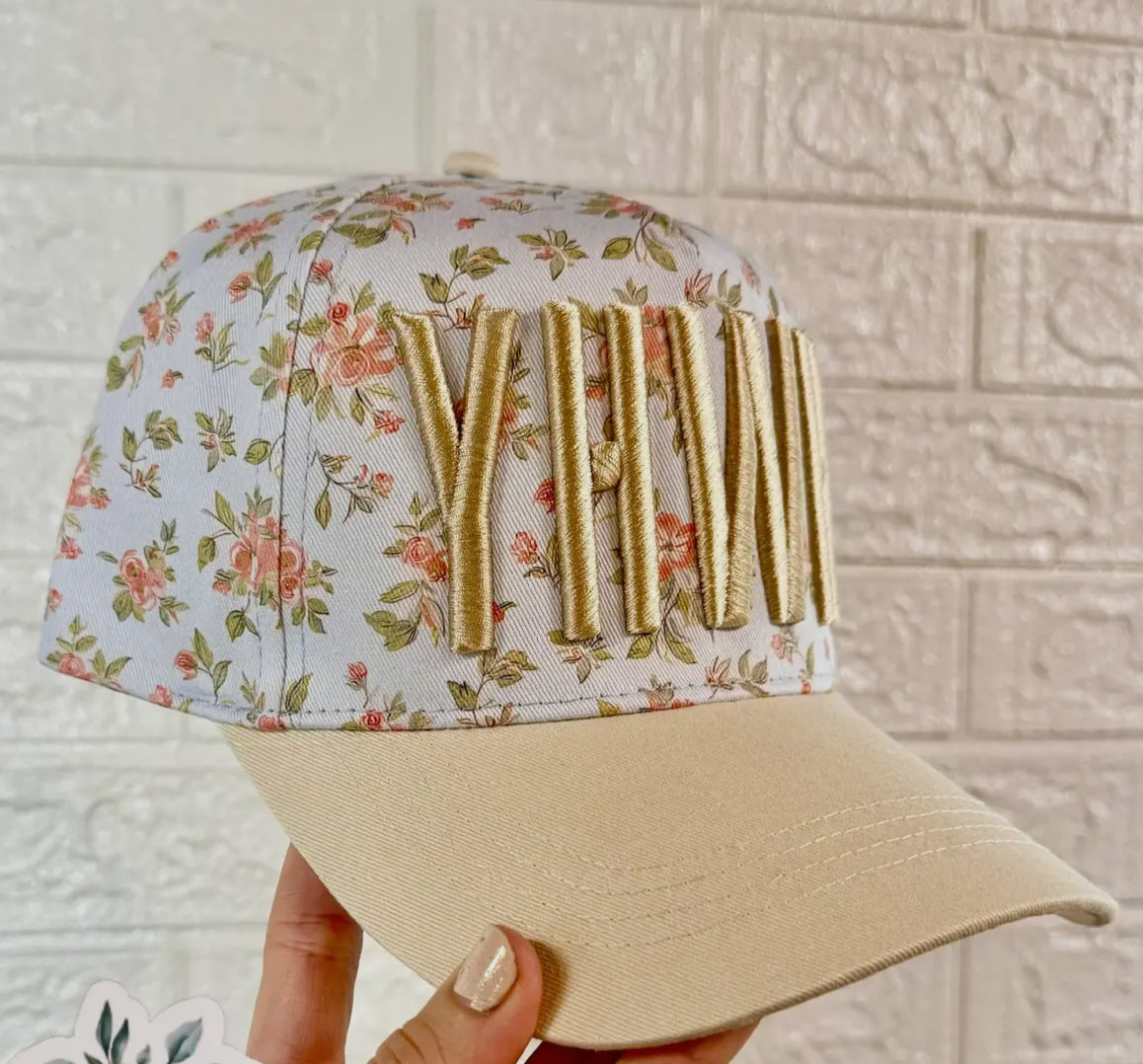 Floral Yhwh Puff Embroidered Hat